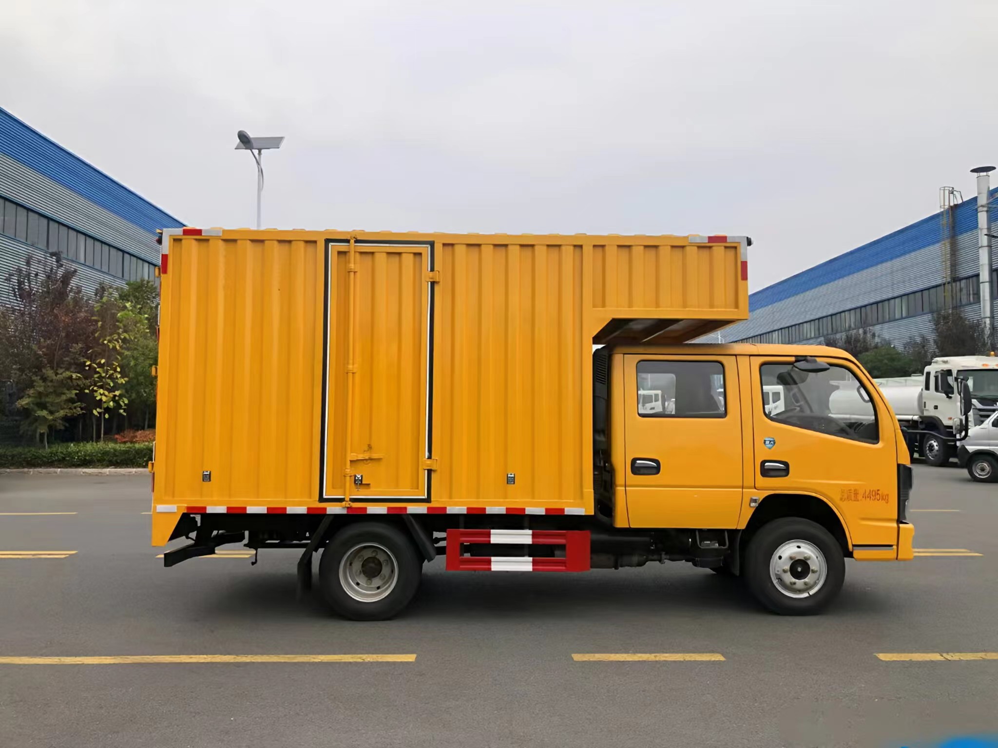 | 上裝配置 | 箱體采用瓦楞箱體,側(cè)面和后面各一個(gè)雙開門,箱內(nèi)設(shè)計(jì)兩個(gè)貨架,箱內(nèi)設(shè)計(jì)照明燈,安裝液壓動(dòng)力系統(tǒng),三套液壓動(dòng)力取力快速接口,帶控制面板兩臺4寸的渣漿泵,帶水帶和液壓管(帶快接)裝一個(gè)液壓驅(qū)動(dòng)空壓機(jī),一個(gè)800公斤12V電控小吊機(jī)安裝3500W逆變器,帶電控箱,其他程力專用車廠家標(biāo)配… | ||