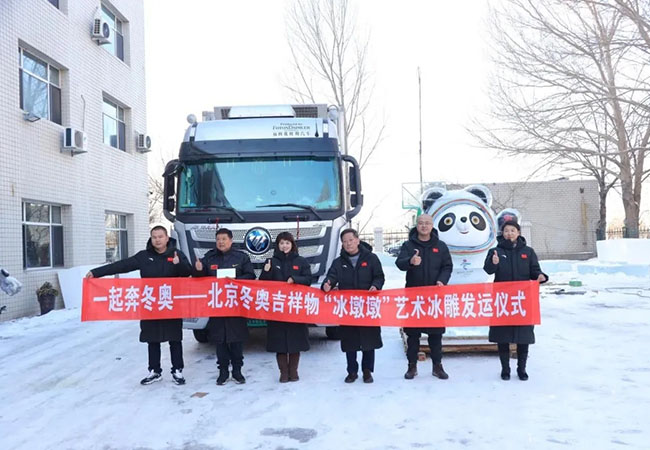 隨著2022北京冬奧會真正進(jìn)入倒計時,全國人民的心也同步進(jìn)入“北京時間”,并希望以自己的方式為世界首座“雙奧之城”貢獻(xiàn)力量。2022年1月4日,來自“冰城”哈爾濱的藝術(shù)家劉德臣,以松花江采集的堅冰為原材,秉承一片赤子之心,親手雕刻出一座重達(dá)數(shù)噸,以冬奧會吉祥物“冰敦敦”為原型的藝術(shù)冰雕作品,由歐曼自動擋冷藏車從哈爾濱運(yùn)向北京,在世錦賽500米短道速滑世界冠軍于靜、薛瑞紅的共同見證下一起向冬奧!