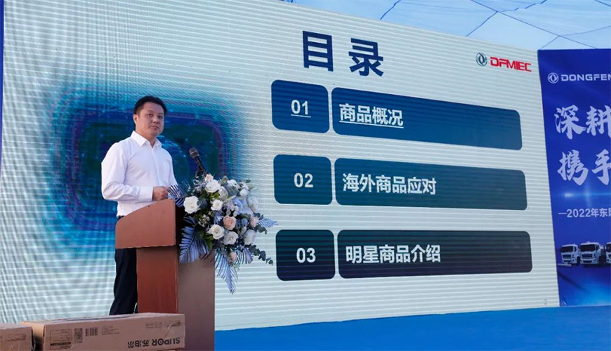 楊濤助理表示,中國東風汽車工業(yè)出口有限公司是東風汽車集團有限公司的二級單位,是一家專業(yè)從事東風集團汽車出口、全球供應鏈服務、工業(yè)投資的外貿公司。2021年東風的海外事業(yè)取得了亮眼的成績,海外出口車輛(含成套散件)15.4萬輛,同比增長了1.2倍,創(chuàng)造了歷史最高紀錄;2022年將沖刺挑戰(zhàn)20萬輛的銷售目標,借此推薦會的機遇,希望程力和隨州的銷售經(jīng)理,能夠搭上東風海外事業(yè)發(fā)展的快速列車,共創(chuàng)新業(yè)績新輝煌。