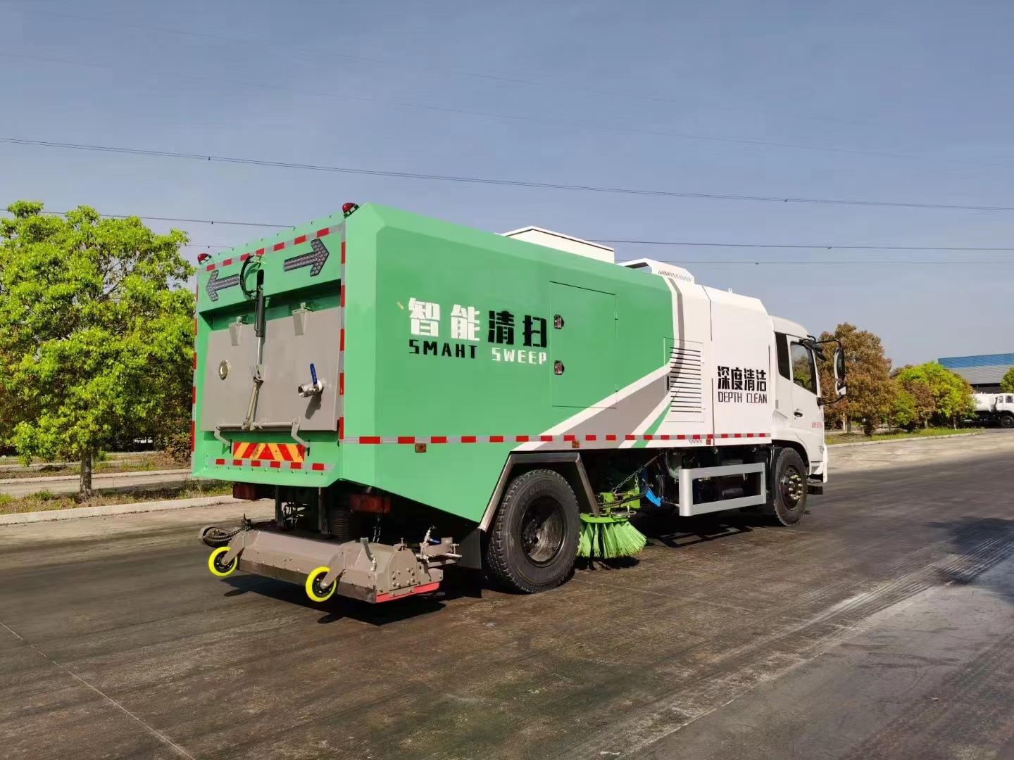 | 上裝配置 | 上裝控制部分采用一鍵式操作,點動所選作業(yè)模式及作業(yè)啟動。掃盤、吸盤、及所有水閥、氣缸隨控制器設(shè)定順序依次打開。隨后旋轉(zhuǎn)副發(fā)動機手動油門開啟清掃作業(yè)。車輛同時加裝倒車影像、遠程搖控(方便司機傾卸垃圾)以及多項語音提示音。 整車水箱容積4.5立方、垃圾箱(濕式垃圾倉)容積7.5立方、濾筒倉4立方。垃圾箱采用雙層上下結(jié)構(gòu),箱體為不銹鋼材質(zhì)。中置清掃車左右立掃、后置滾掃吸盤(吸盤內(nèi)部加裝高壓噴桿)、左右高壓側(cè)噴桿(可單獨工作一邊也可同時打開)。前獨立水箱、中部濾筒倉及后尾部雙層垃圾箱。風(fēng)道匹配晴雨天干濕轉(zhuǎn)換風(fēng)道(根據(jù)不同天氣、路況選擇相對應(yīng)的作業(yè)模式)。 作業(yè)能力強:該車同時具備了洗掃車高壓沖洗作業(yè)能力以及滾掃吸塵車滾掃清掃能力,對于吸覆在路面的雜志、塵垢、油漬、粘著物有著較強清掃效果。車輛作業(yè)時不受睛雨天及路面積水限制,適用于多種路況及天氣環(huán)境。 | ||